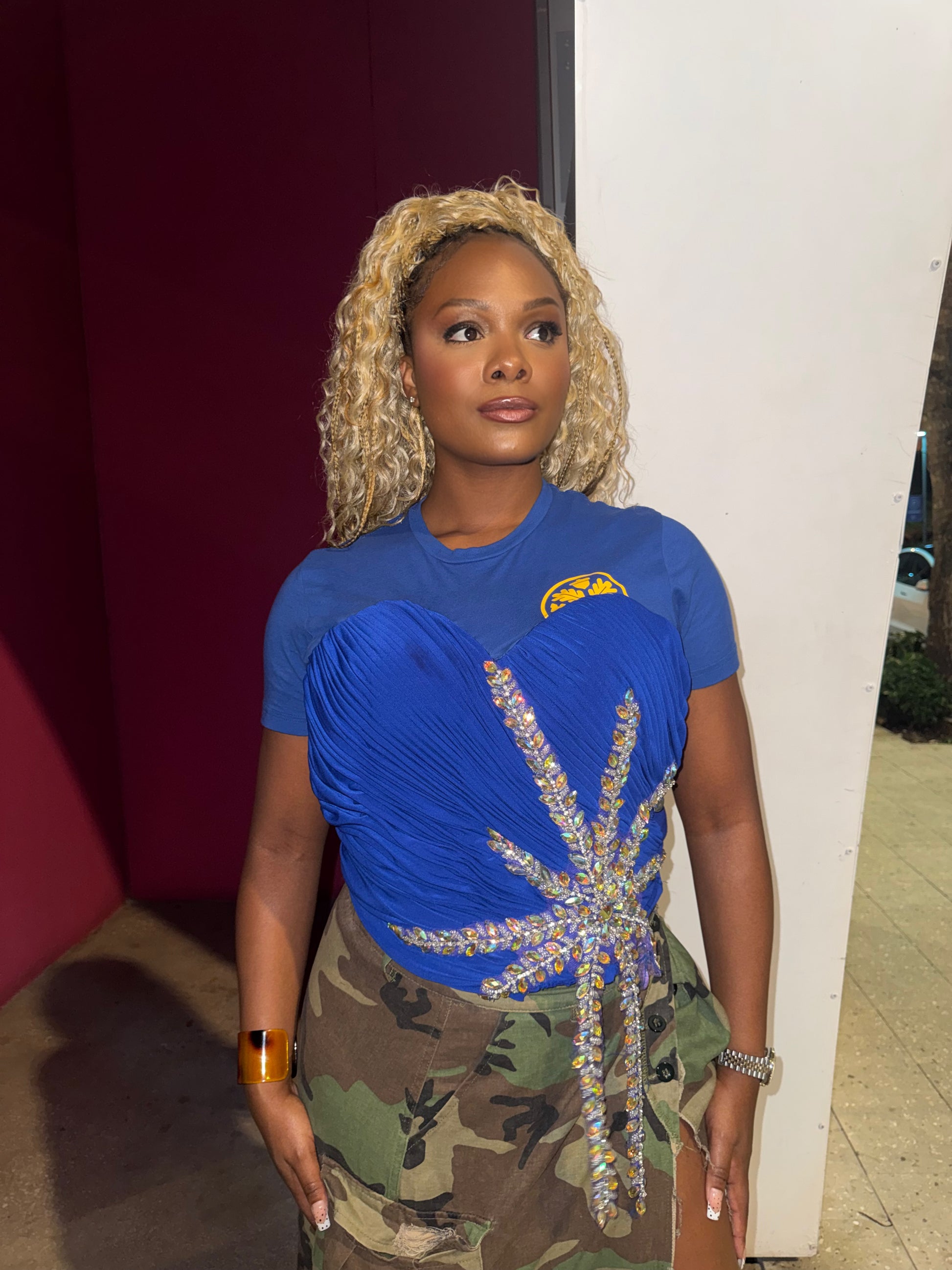 - Iridescent embellished design with detached finishings